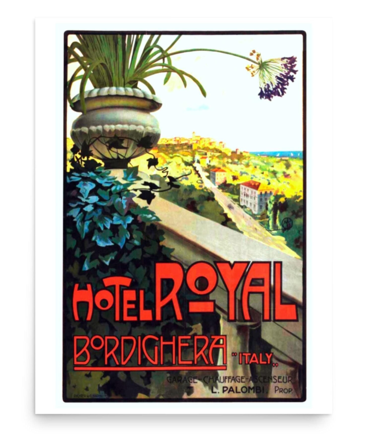 Hotel Royal Bordighera, Italy Vintage Italian Travel Poster
