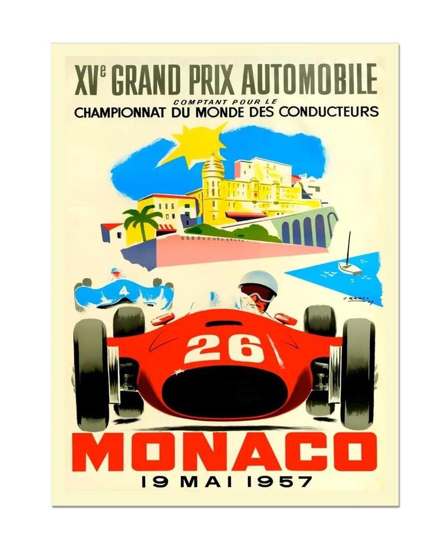 Monaco Grand Prix 1957 Poster Print, Championnat Du Monde Pour Des Conducteurs, XVe Grand Prix Automobile Poster Print on high quality matte paper or canvas.