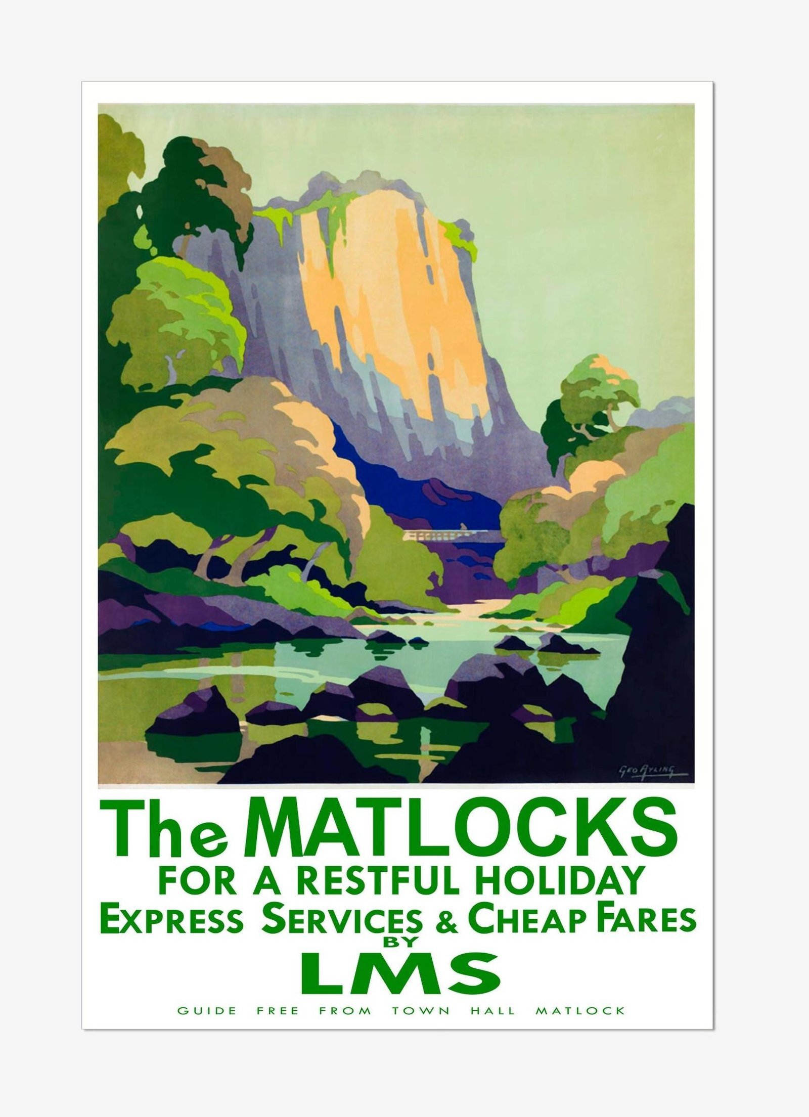 Vintage British Railway Travel Tourism Poster advert for The Matlocks, Derbyshire.